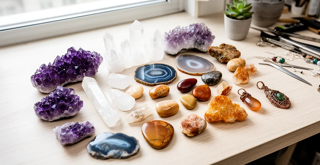 Budget type pour démarrer : Comptez 80 à 150€ pour constituer un premier stock varié. Privilégiez 4 à 5 variétés classiques : améthyste, quartz rose, agate, labradorite et cornaline. Cette base vous permet de créer une collection cohérente sans immobiliser trop de capital.